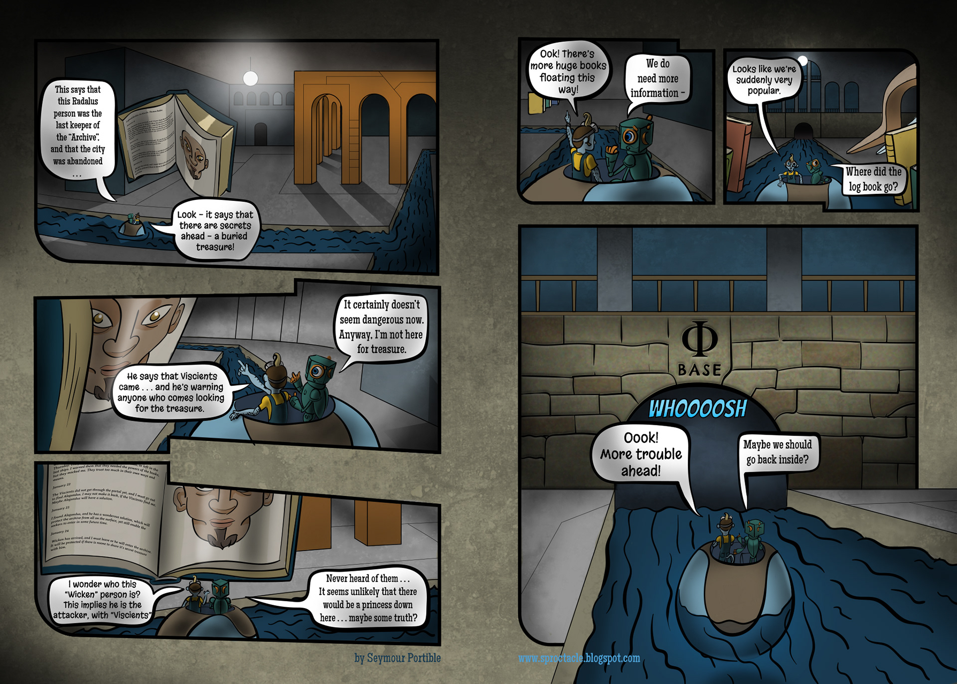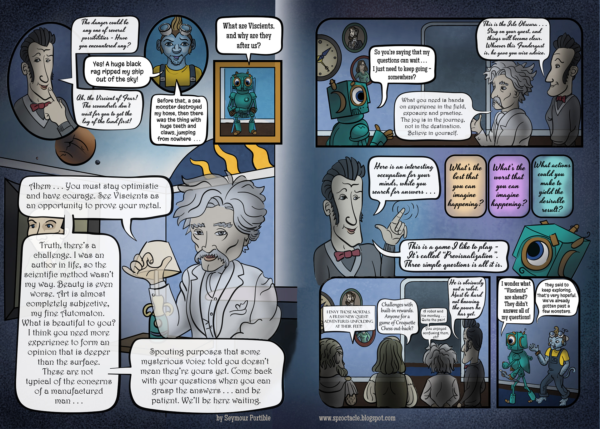 I have enjoyed making this graphic novel immensely, but it seems that I am too busy to get quick progress on it, and there is so much more to tell. I hope to get the whole thing to this point on a website soon, if I can find time. Then it will be easier to read and understand . . . maybe.