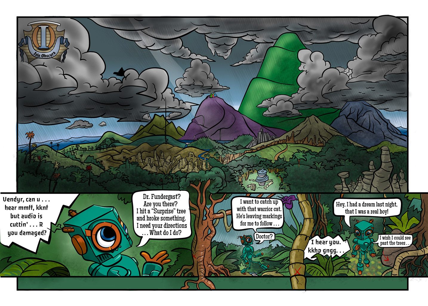 In addition, Uendyr may have noticed that the land is changing, expanding as he heads forward. Distances on the Isle Obscura are deceiving. Until you can clearly see what you want, you may just be dealing with it one step at a time. You may be going the long way around, like I did making this book. It was slow going, since I didn't see exactly what I wanted it to be until I changed my direction to a graphic novel.