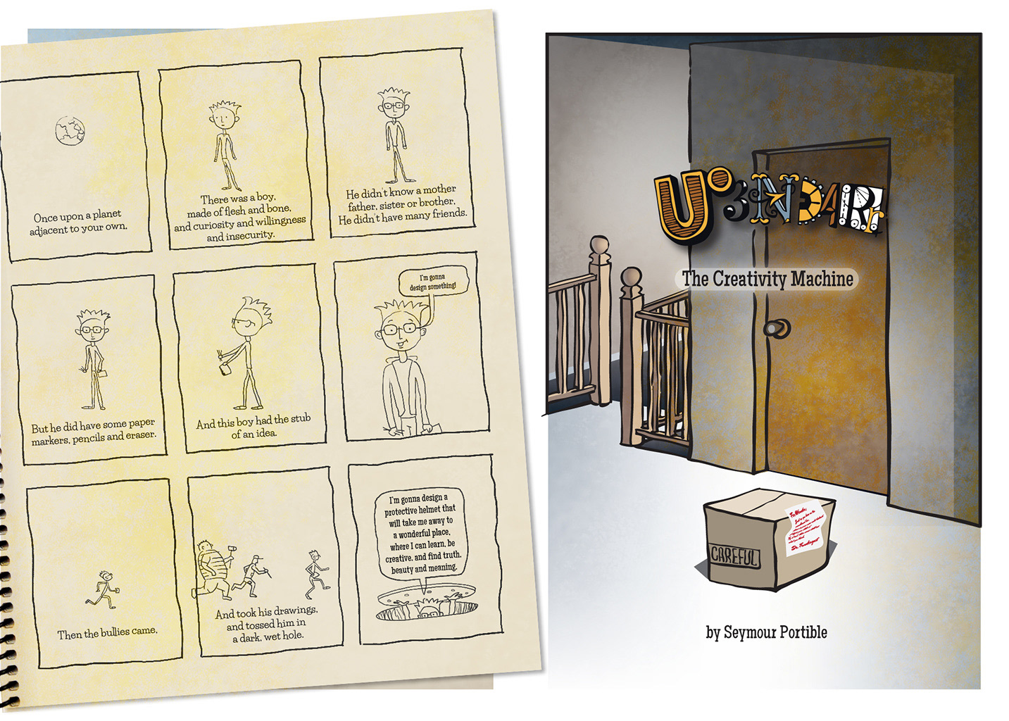 The book begins with a single boy's struggle. The beginnings of my story were about escaping and saving myself from anxieties, and relieving boredom. Whatever the reason, if you have an idea start inside you, take the next step. Decide to develop something of your own. My experiment started with awful pencil sketches . . . over 35 years ago, and it looks nothing now like it did then. Its a fun experiment . . .