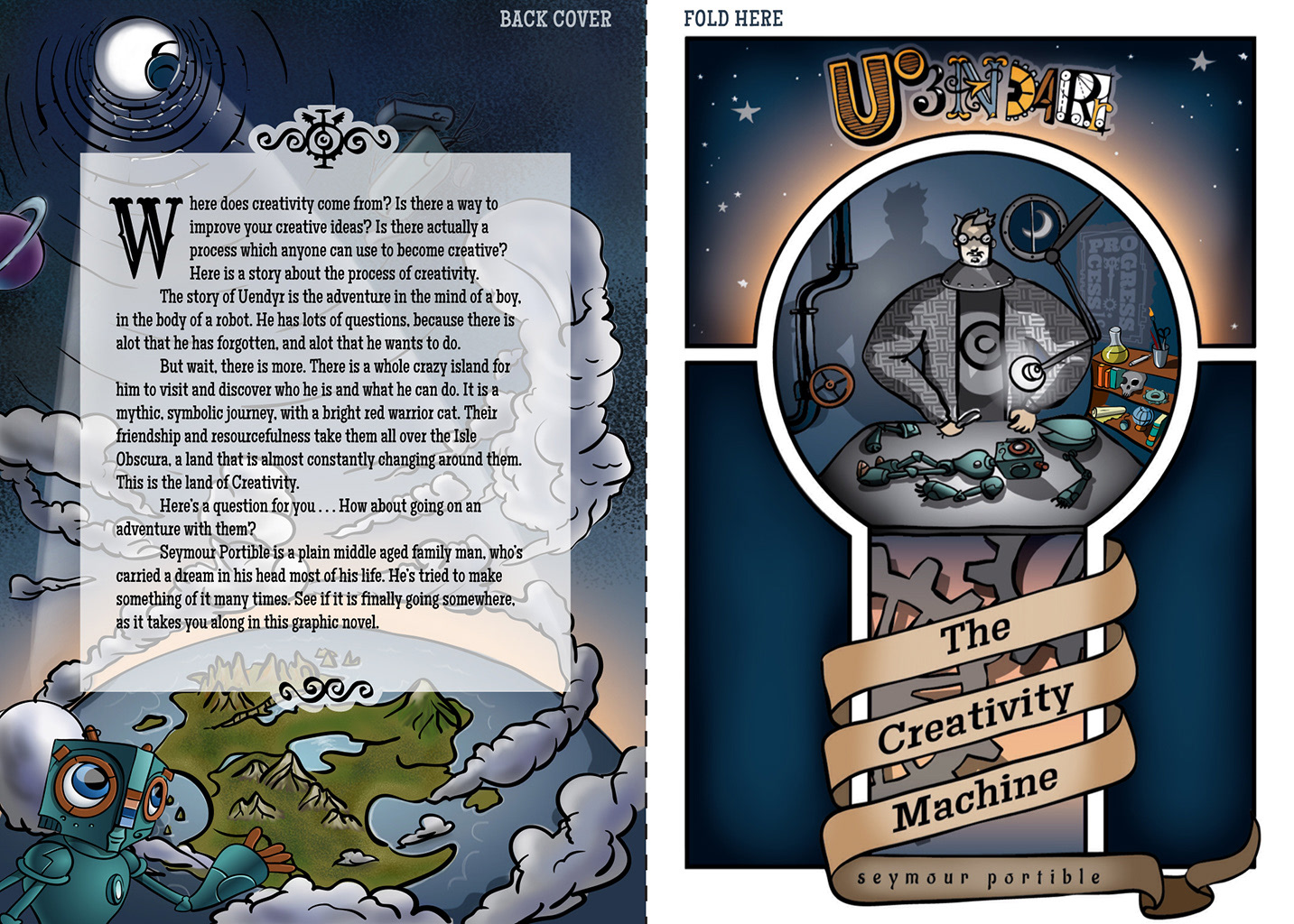 There are many myths about creativity. One is that it is exclusive, that some have it and some don’t. This is one of the things I am making this book to reject. Uendyr doesn’t even seem to be acting creatively in the beginning, and a robot is certainly not a new idea. Neither is virtual reality, or an island of dreams, or crabs, ships, ghosts or cats. The point isn’t that every detail is new, it is the way you mix it. Creativity is a lifestyle, a way of thinking, including gathering what you already have and know, then deliberately changing it.