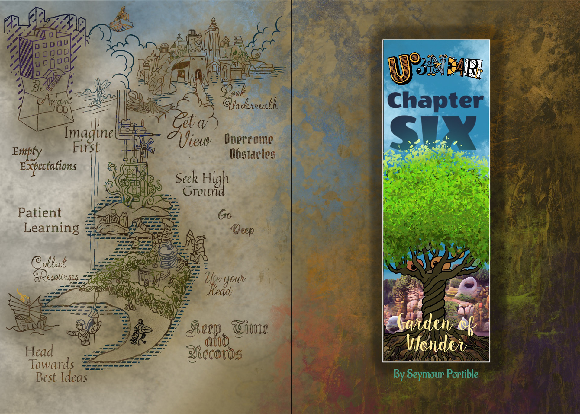 I love maps, and have drawn many for this book, but hesitate to map what comes next, as I want to reveal it a bit at a time, have a healthy amount of mystery. But this one is looking back at the beginning, and does well to represent progress and structure to what has happened so far. Book 6 is past the middle, but represents some of the most important bits of the creative process.