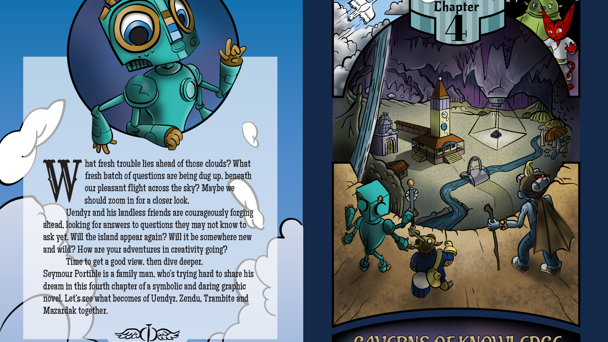 This book is taking on lots of challenges, and reintroducing Uendyr and Mazardak, who were completely missing in the last chapter, as they were lost, far underground. I take the story and the characters to extremes, in the art style, and in the experiences. Many parts of this story continue to be inspired by dreams, though I seem to be getting older, and dreaming more about real life, real people and sometimes very strange things.