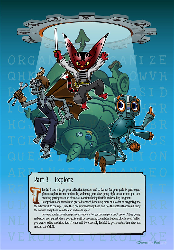 And think about the ideas and steps that make up the coming progress of creativity in my story.