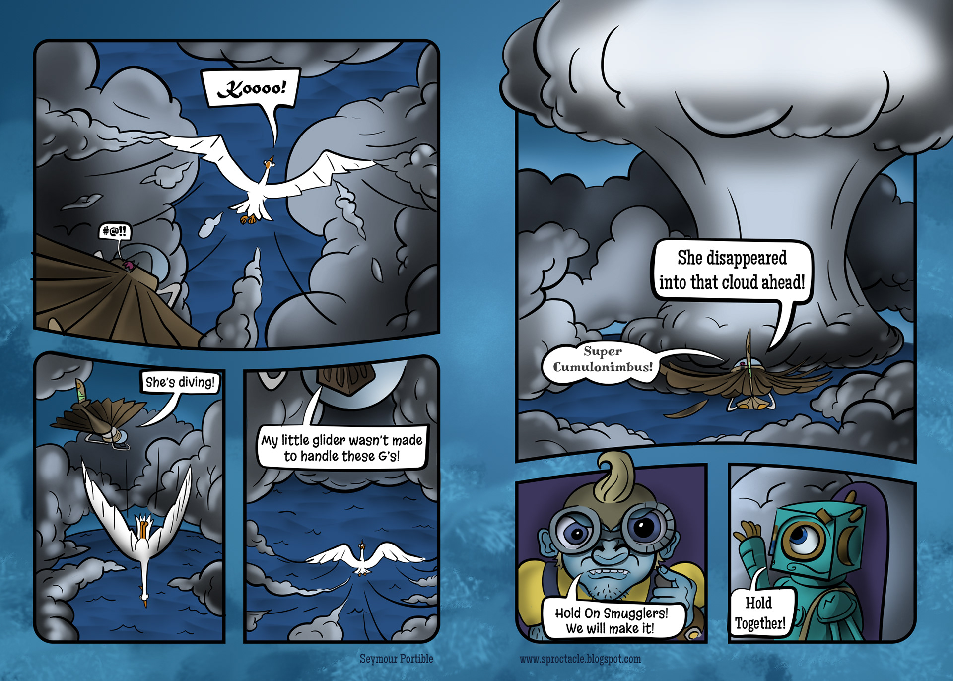These guys are in the sky, and they're in the precarious position of having nowhere to land, relying on the wind. Which isn't enough to keep up with their humongous guide.