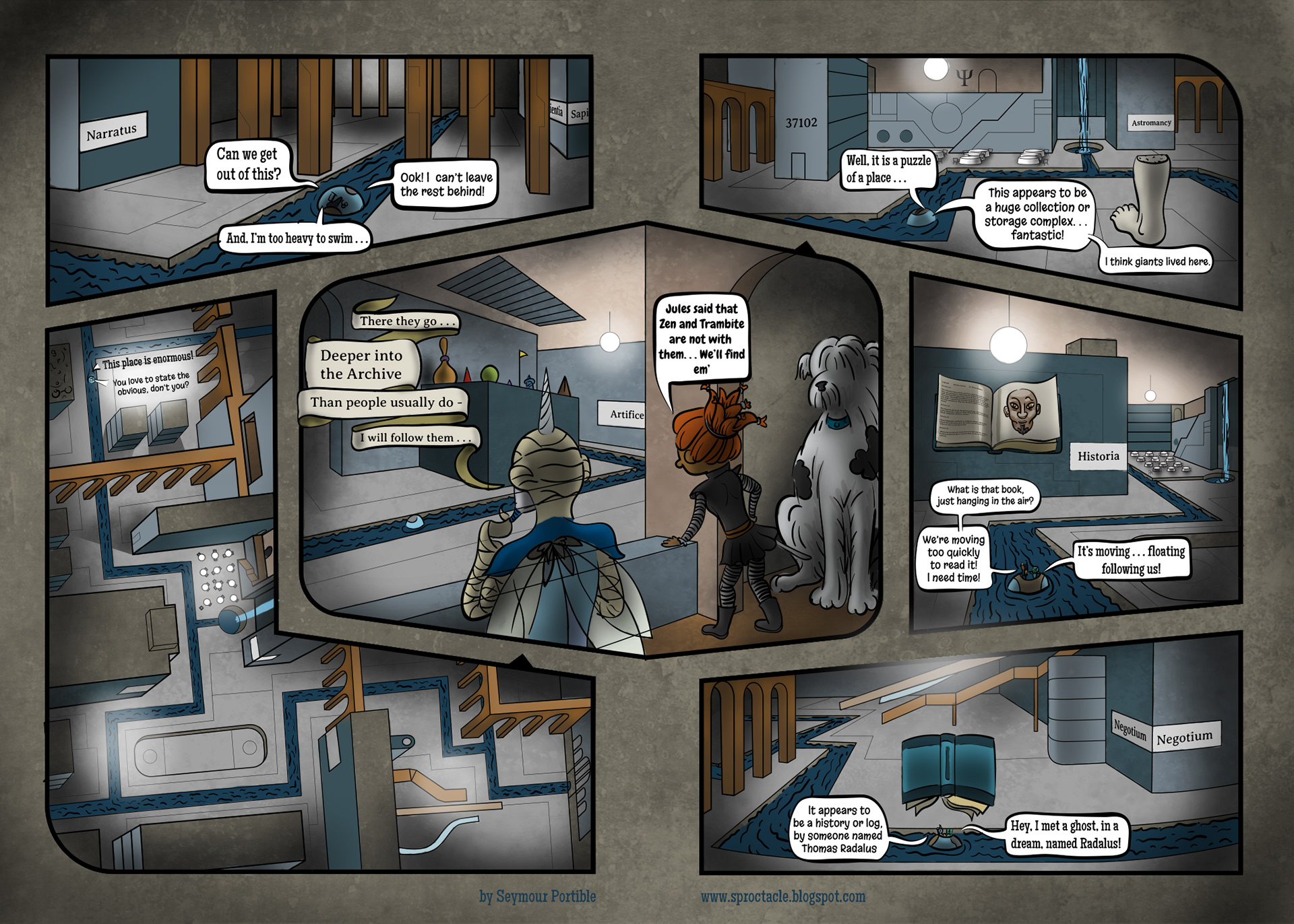 Tram and Zen are left behind, and Maz and Uendyr enter the Archive. This is the part in the creative process when you go researching, to find out what has been done, when you look for information. Come with questions, just like Uendyr. Don't worry, the light is always on.