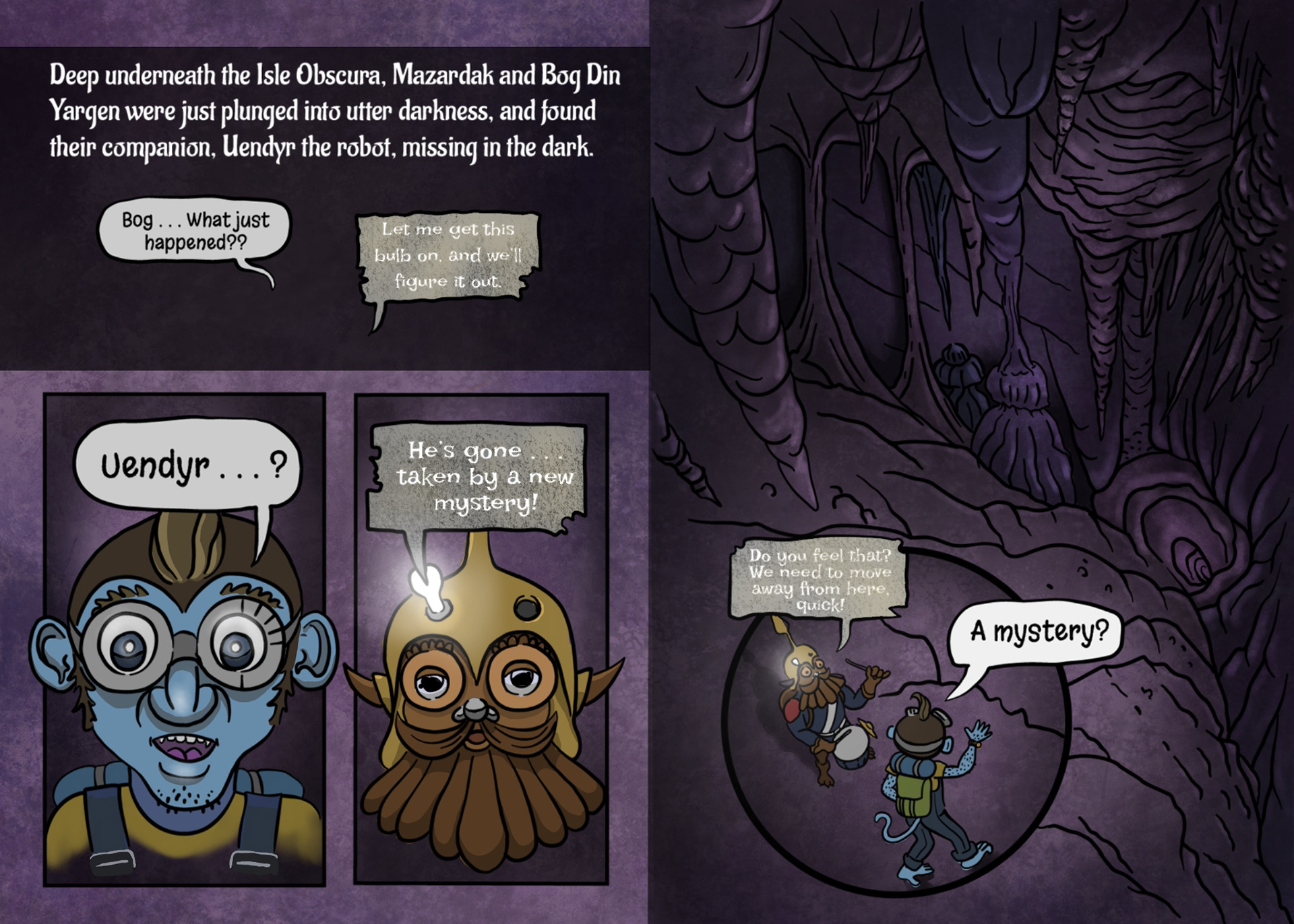This book is taking on lots of challenges, and reintroducing Uendyr and Mazardak, who were completely missing in the last chapter, as they were lost, far underground. I take the story and the characters to extremes, in the art style, and in the experiences. Many parts of this story continue to be inspired by dreams, though I seem to be getting older, and dreaming more about real life, real people and sometimes very strange things.