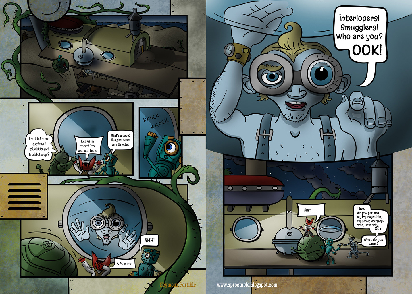 This page hit me three weeks ago, all of a sudden, because I felt like I was avoiding opportunities, and I had an idea for a character, but he didn't fit anywhere. I made him huge, and shoe-horned him in here. Now he feels like he was already there, waiting for me to turn that corner. But he comes with plenty of mystery, that I cannot answer. His name says a lot. Maybe Goomchug has left some notes behind.