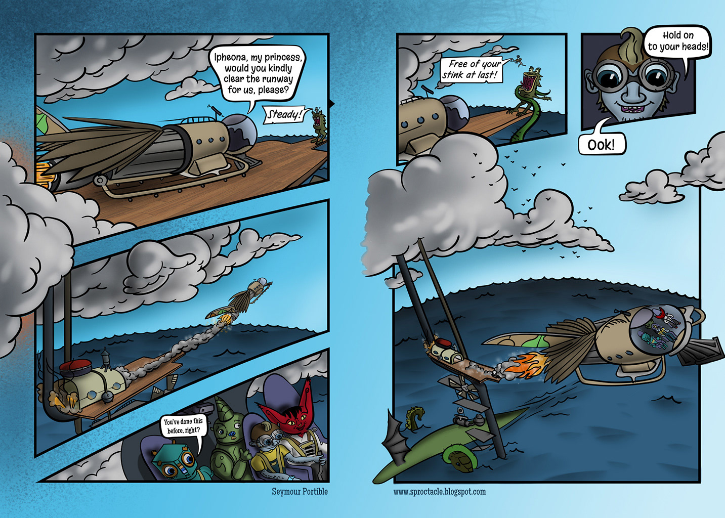 The first chapter just started the process of finding creativity, truth, beauty, and facing some dangers. The adventurers did more avoiding the fight than facing it, and traveled over a mostly submerged area of a place called the Isle Obscura, eventually to find it disappear completely beneath the waves. Luckily, they got a ride from a nerdy monkey.